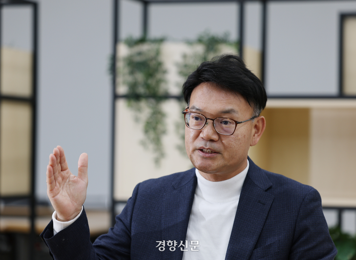 박주근 리더스인덱스 대표가 지난달 26일 경향신문 여다향에서 내년 산업 전망과 지배구조 개선 성과 등에 대해 이야기하고 있다. 강윤중 기자
